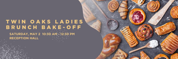 The Women’s Ministry invites all women from 6th grade to 100 to the annual Twin Oaks Ladies Brunch Bake-Off! The event will be held Saturday, May 2nd from 10:30-12:30 in the downstairs Reception Hall.Come and eat or come to compete! (Allergen Friendly bakes are encouraged.)